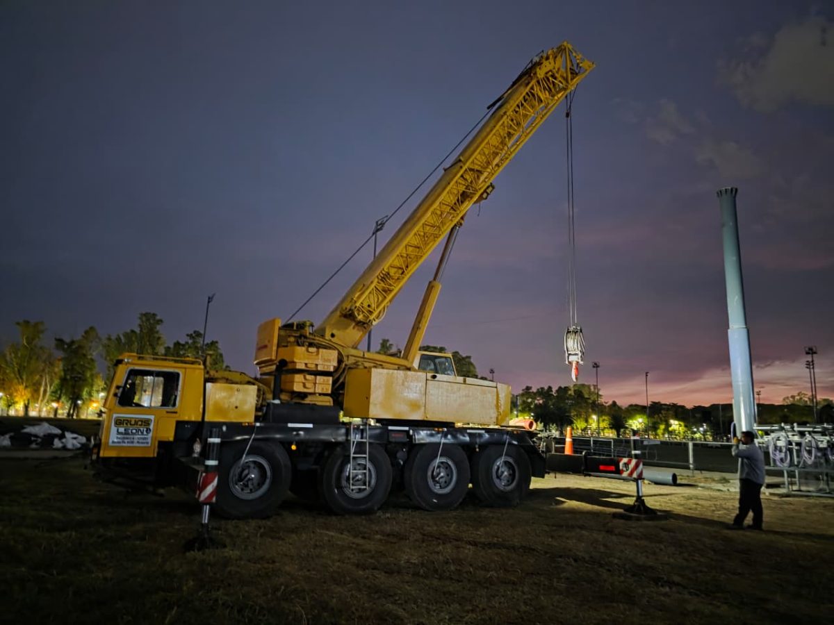 • Instalación de cuatro (4) columnas metálicas de 20 metros de altura libre, equipadas con 16 proyectores Arena Vision Gen 3.5 A de Signify Argentina en cada una.